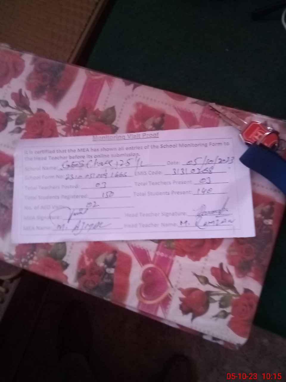 | Attendance Register | Head Teacher | MEA with School | Visit Proof |
