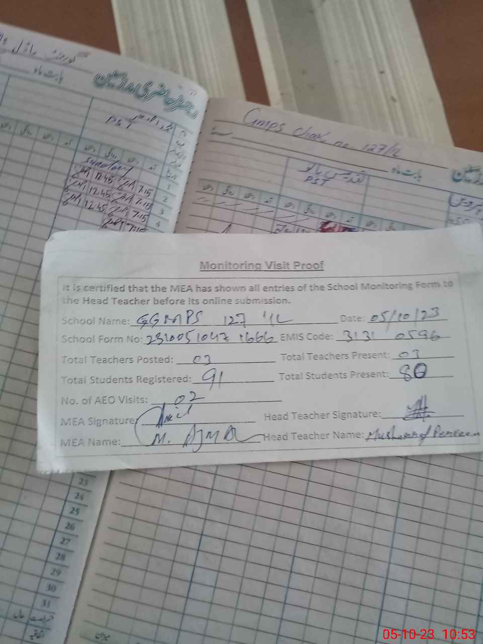 | Attendance Register | Head Teacher | MEA with School | Visit Proof |