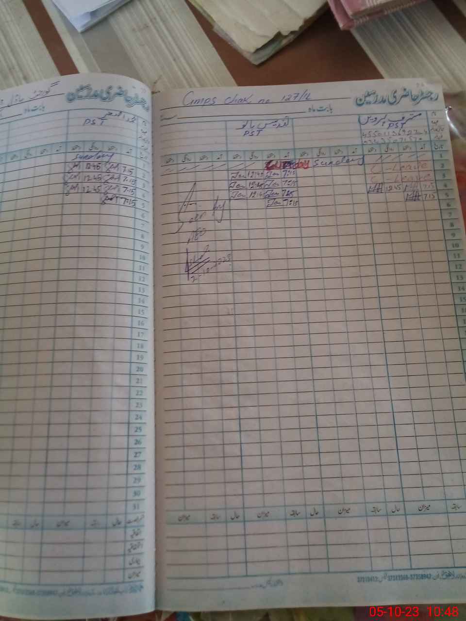| CNIC | Full Name | Designation | R/C | Absence During Last Calender Month |