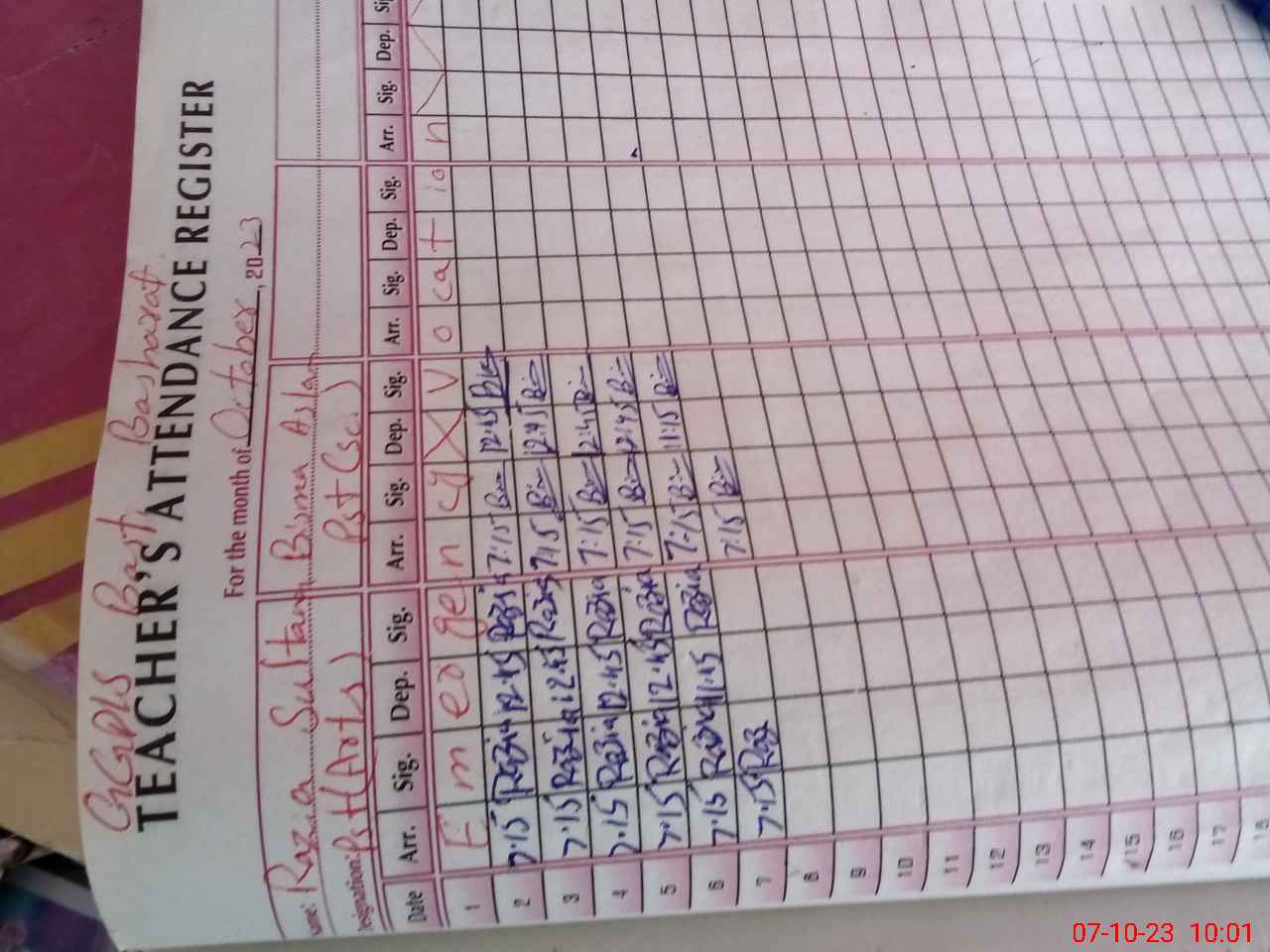 | Name: Bi**** As**** Designation: (School Headmaster's/Headmistress's) PST Phone/Cell Number: 03**** |