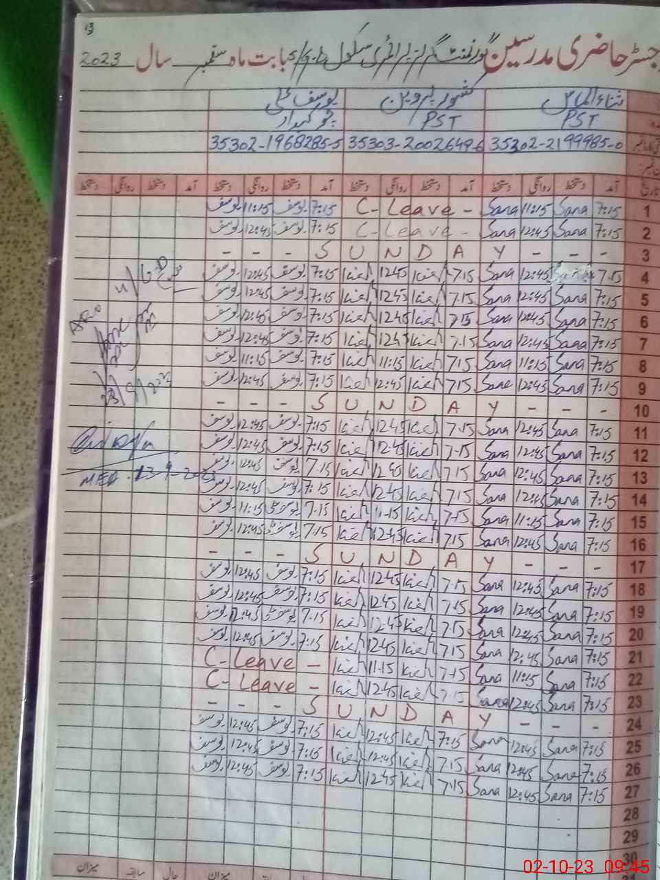 | Name: SA**** AL**** Designation: (School Headmaster's/Headmistress's) PST Phone/Cell Number: 03**** |