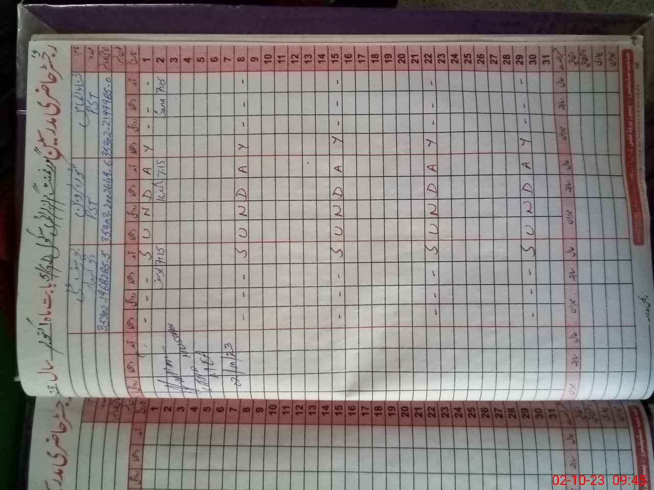 | CNIC | Full Name | Designation | R/C | Absence During Last Calender Month |