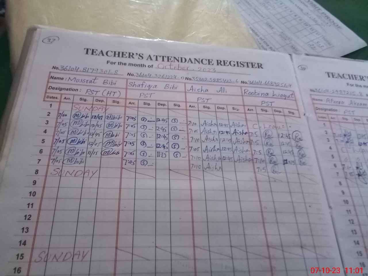 | Name: Mu**** Bi**** Designation: (School Headmaster's/Headmistress's) PST Phone/Cell Number: 03**** |