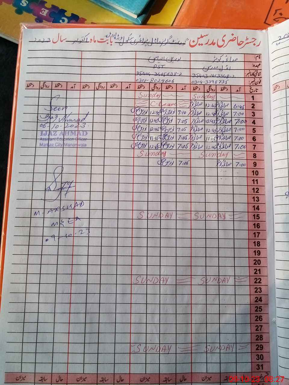 | Name: SA**** KA**** Designation: (School Headmaster's/Headmistress's) PST Phone/Cell Number: 03**** |
