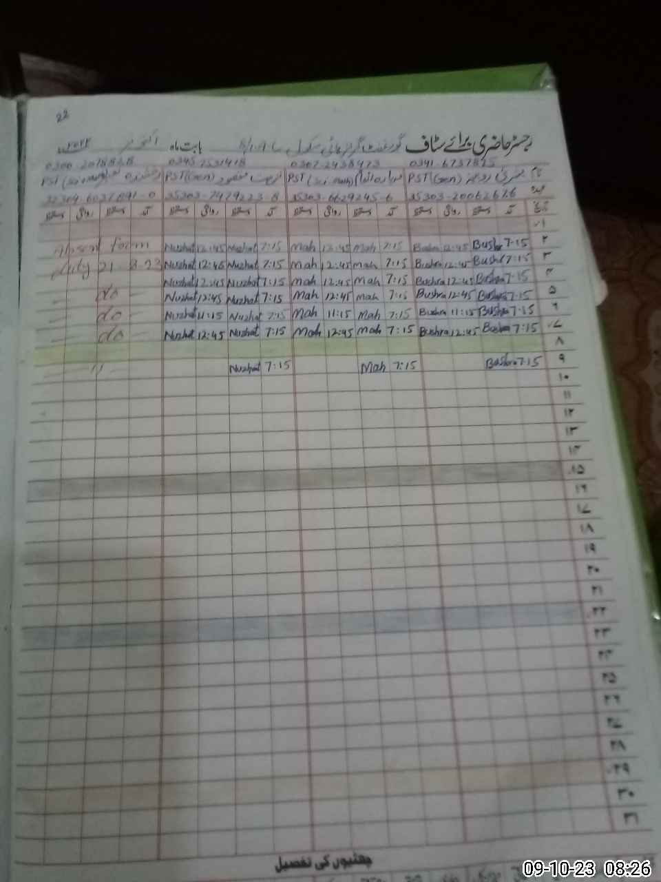 | Name: Sh**** Af**** Designation: (School Headmaster's/Headmistress's) HEADMASTER Phone/Cell Number: 03**** |