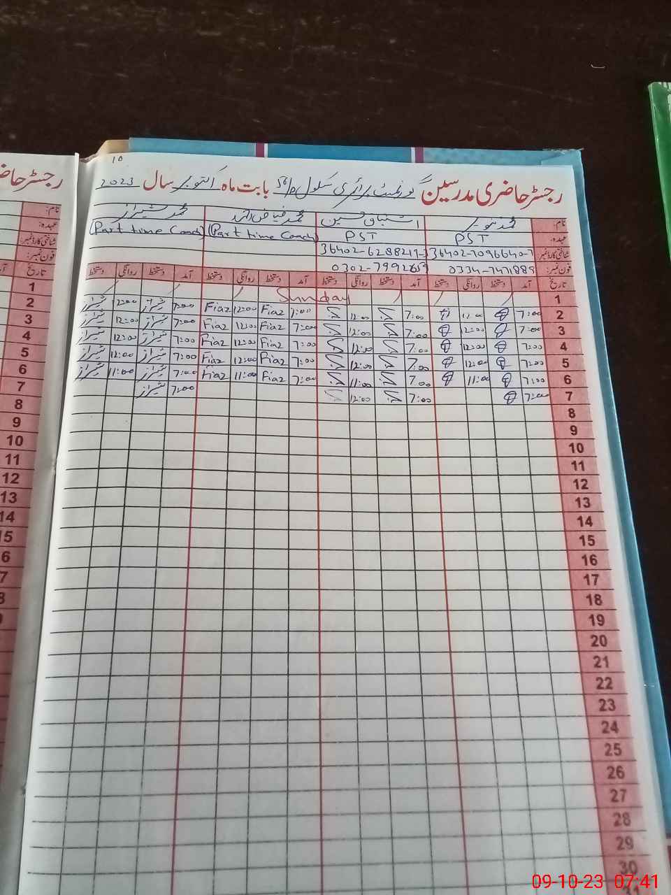 | Name: MTa**** Designation: (School Headmaster's/Headmistress's) PST Phone/Cell Number: 03**** |