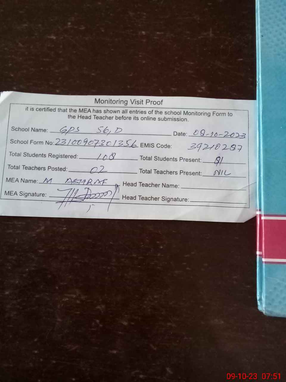 | EMIS Code: 39210287 | Name of School: GPS 56/D | |||