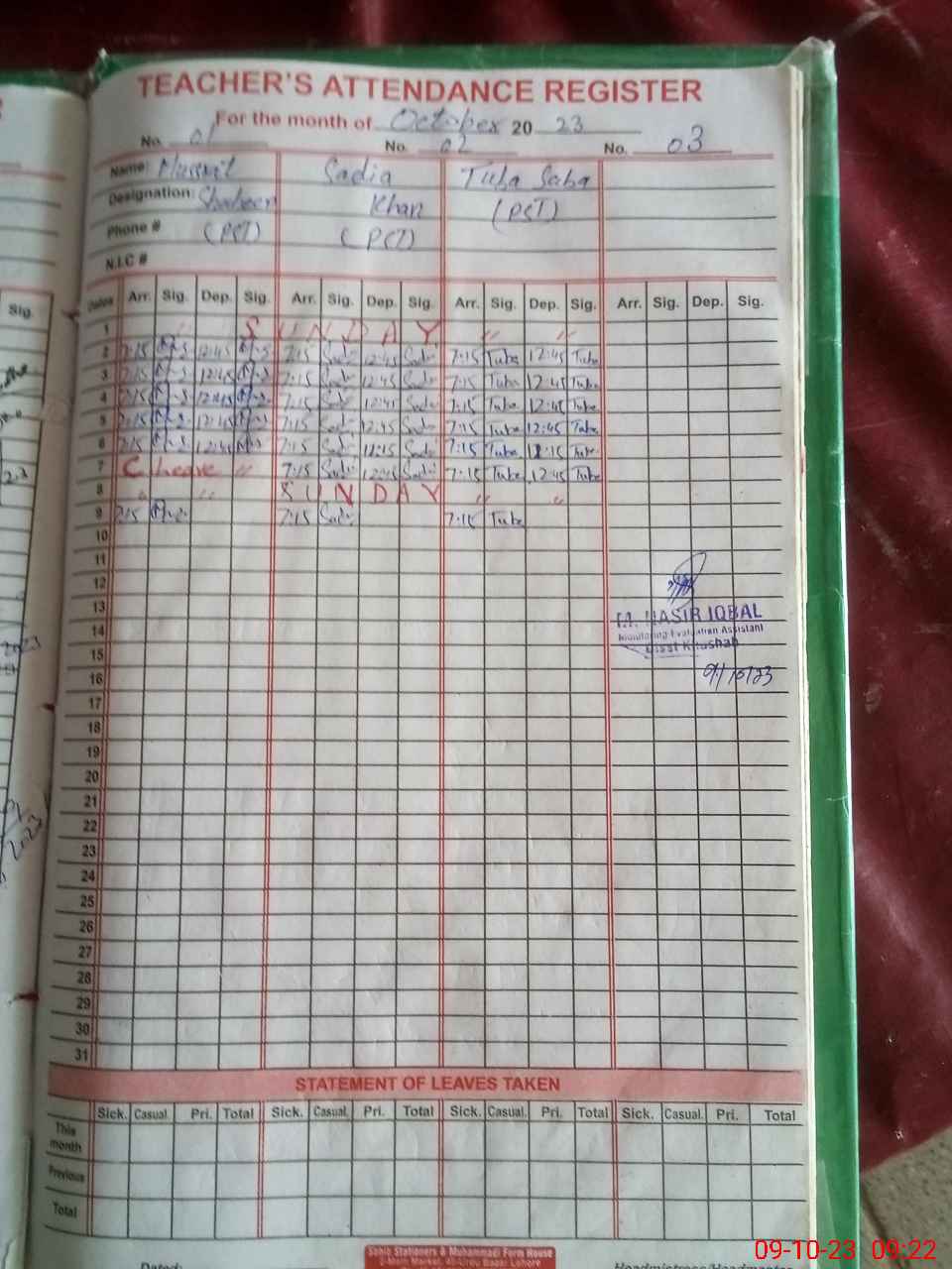 | Name: Mu**** Sh**** Designation: (School Headmaster's/Headmistress's) PST Phone/Cell Number: 03**** |