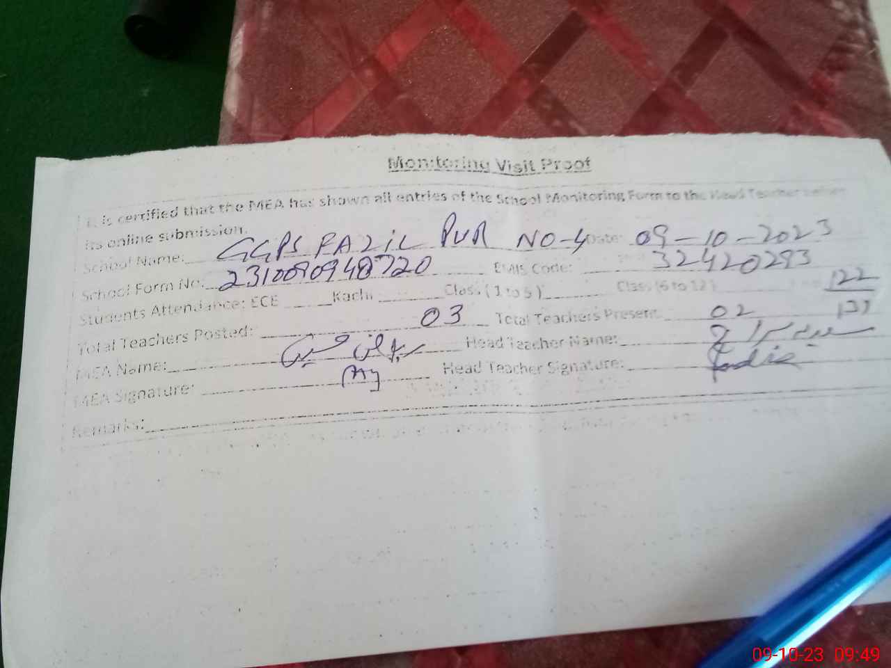 | EMIS Code: 32420293 | Name of School: GGPS FAZILPUR NO. 4 | |||