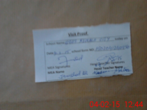 | Attendance Register | Head Teacher | MEA with School | Visit Proof |