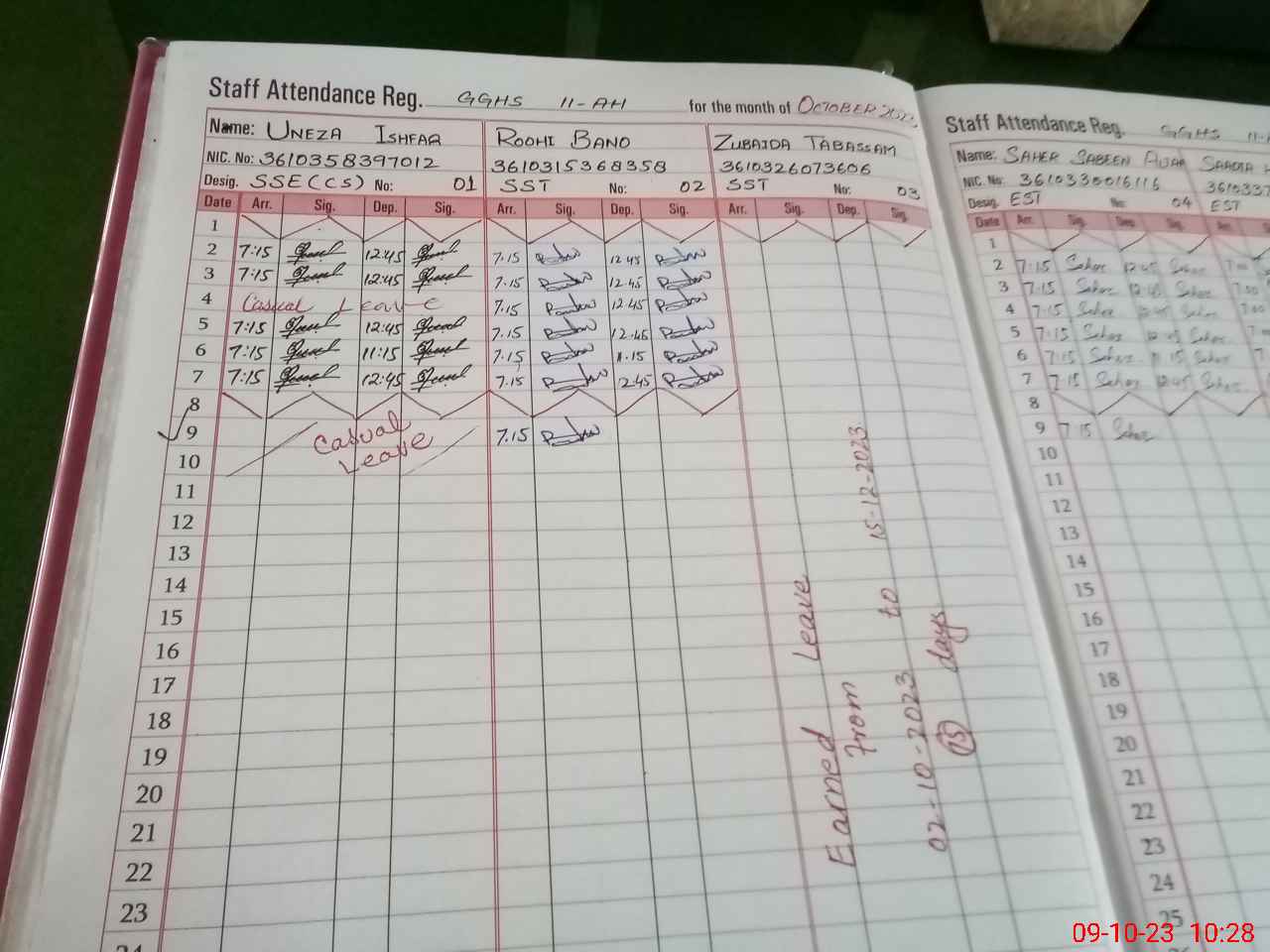 | CNIC | Full Name | Designation | R/C | Absence During Last Calender Month |