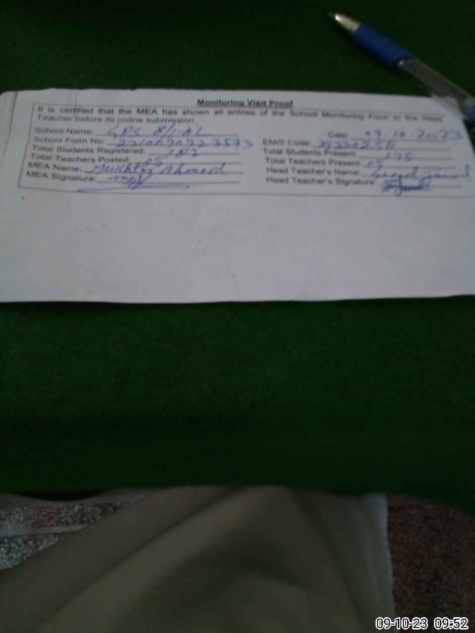 | Certified that this School was Inspected by the Undersigned MEA/DMO Today and the Information Stated Above is as Per Record. | |||||