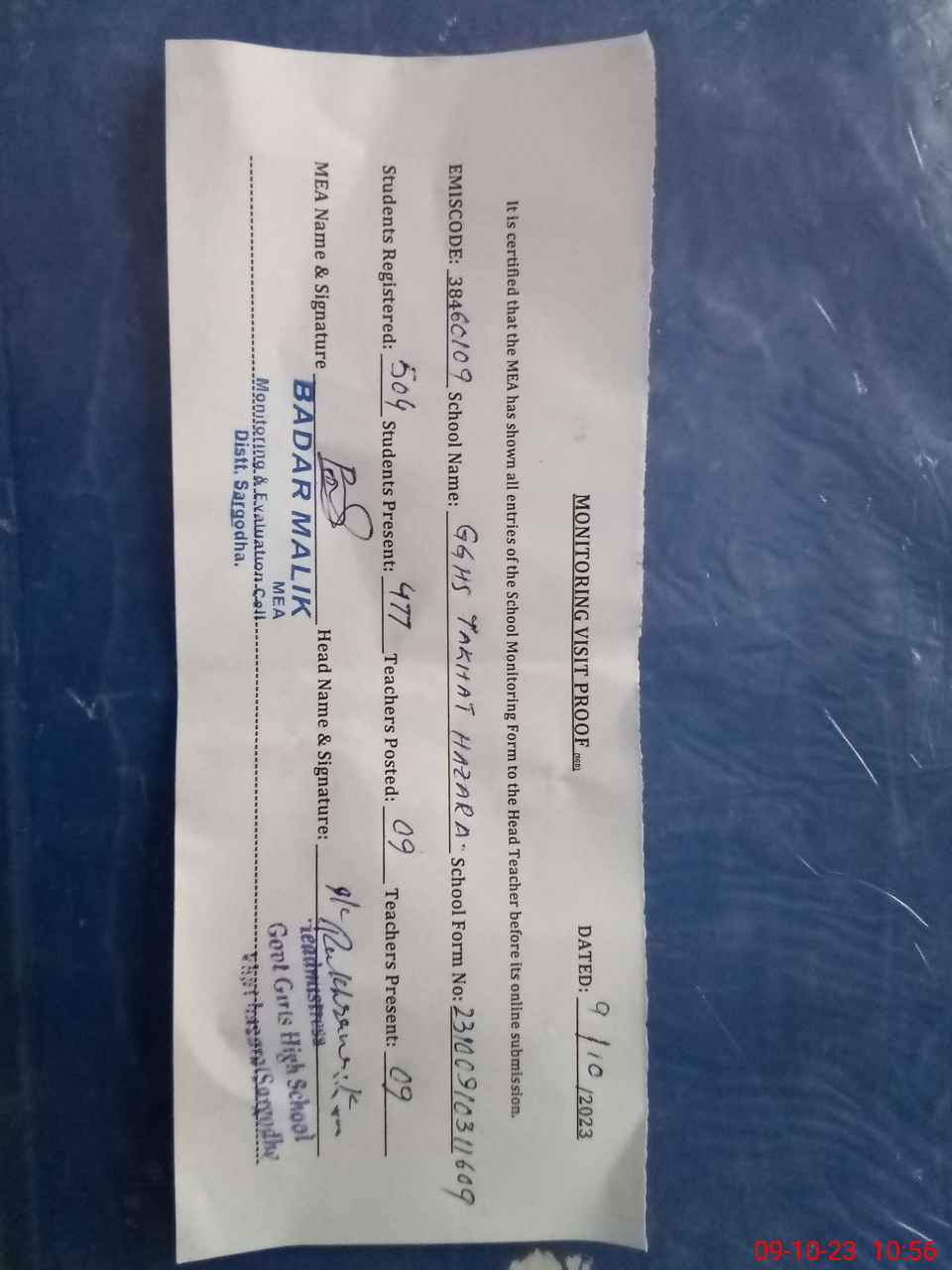 | EMIS Code: 38460109 | Name of School: GGHS TAKHT HAZARA | |||