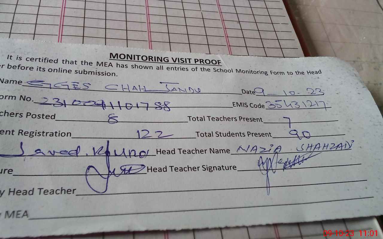 | EMIS Code: 35431217 | Name of School: GGES CHAH JANDU | |||