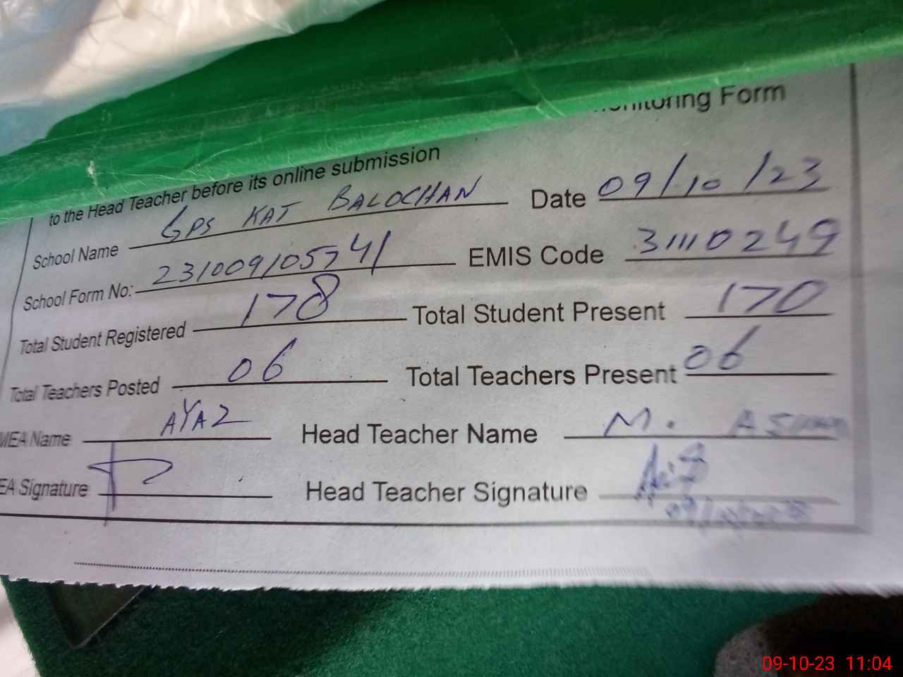 | EMIS Code: 31110249 | Name of School: GPS KAT BALOOCHAN | |||