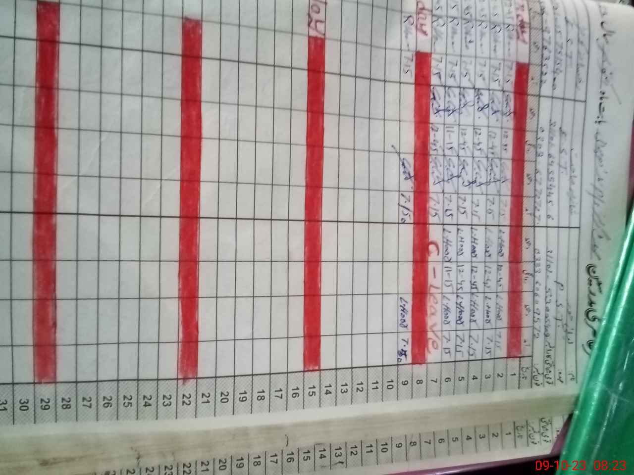 | CNIC | Full Name | Designation | R/C | Absence During Last Calender Month |