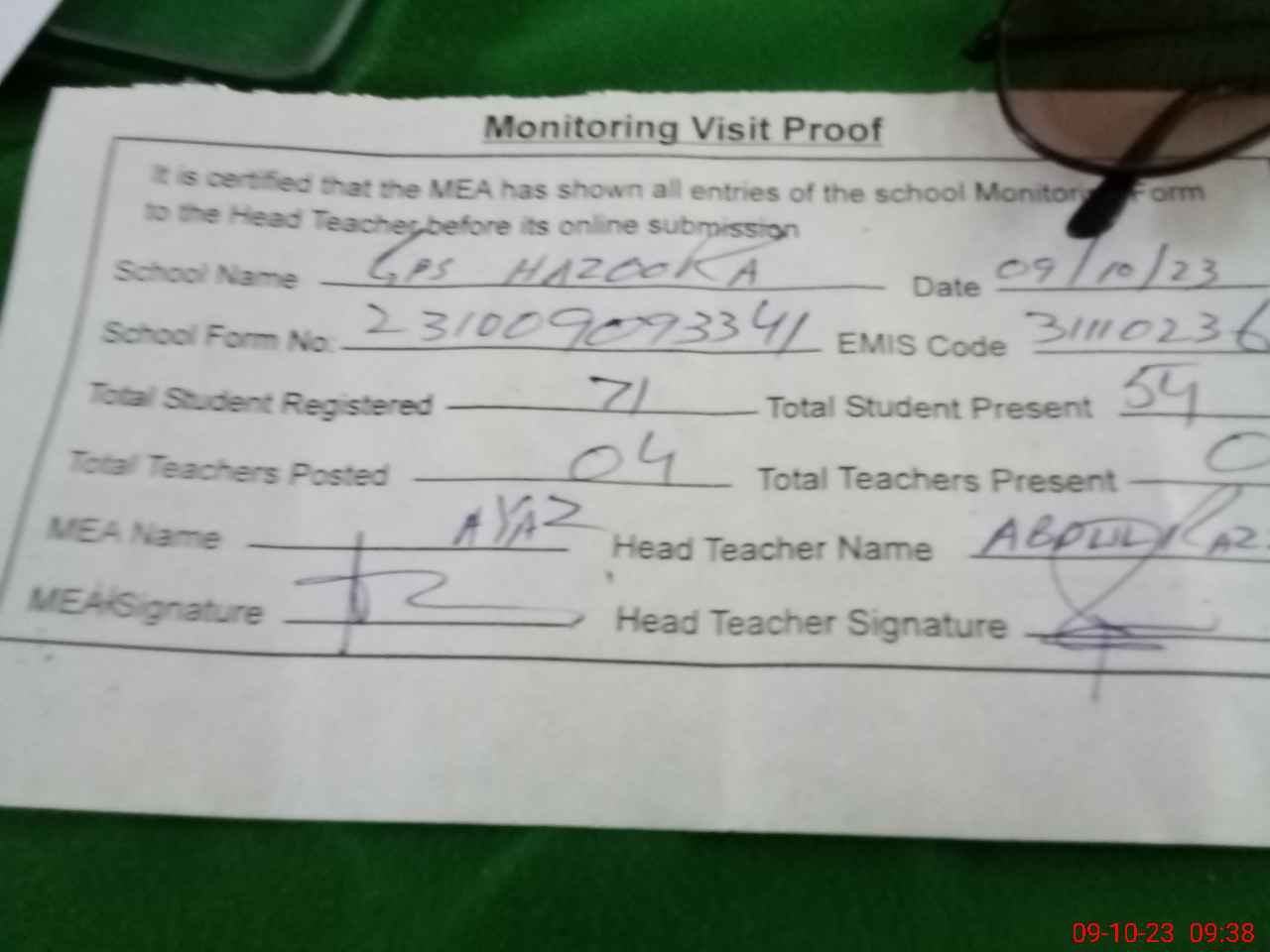 | EMIS Code: 31110236 | Name of School: GPS AJMAL ABAD (BASTI HAZOORA) | |||