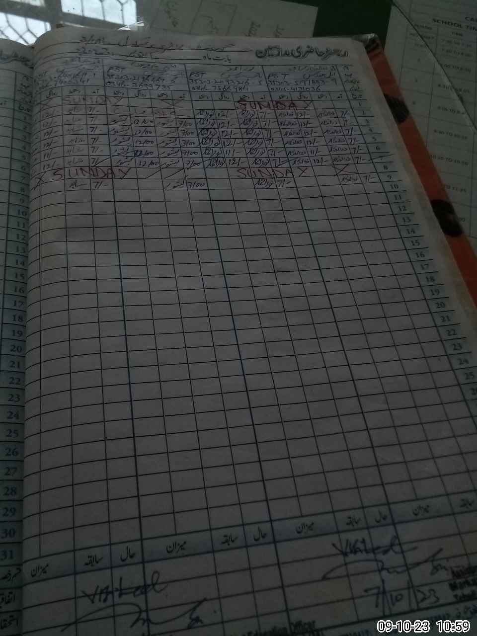 | CNIC | Full Name | Designation | R/C | Absence During Last Calender Month |