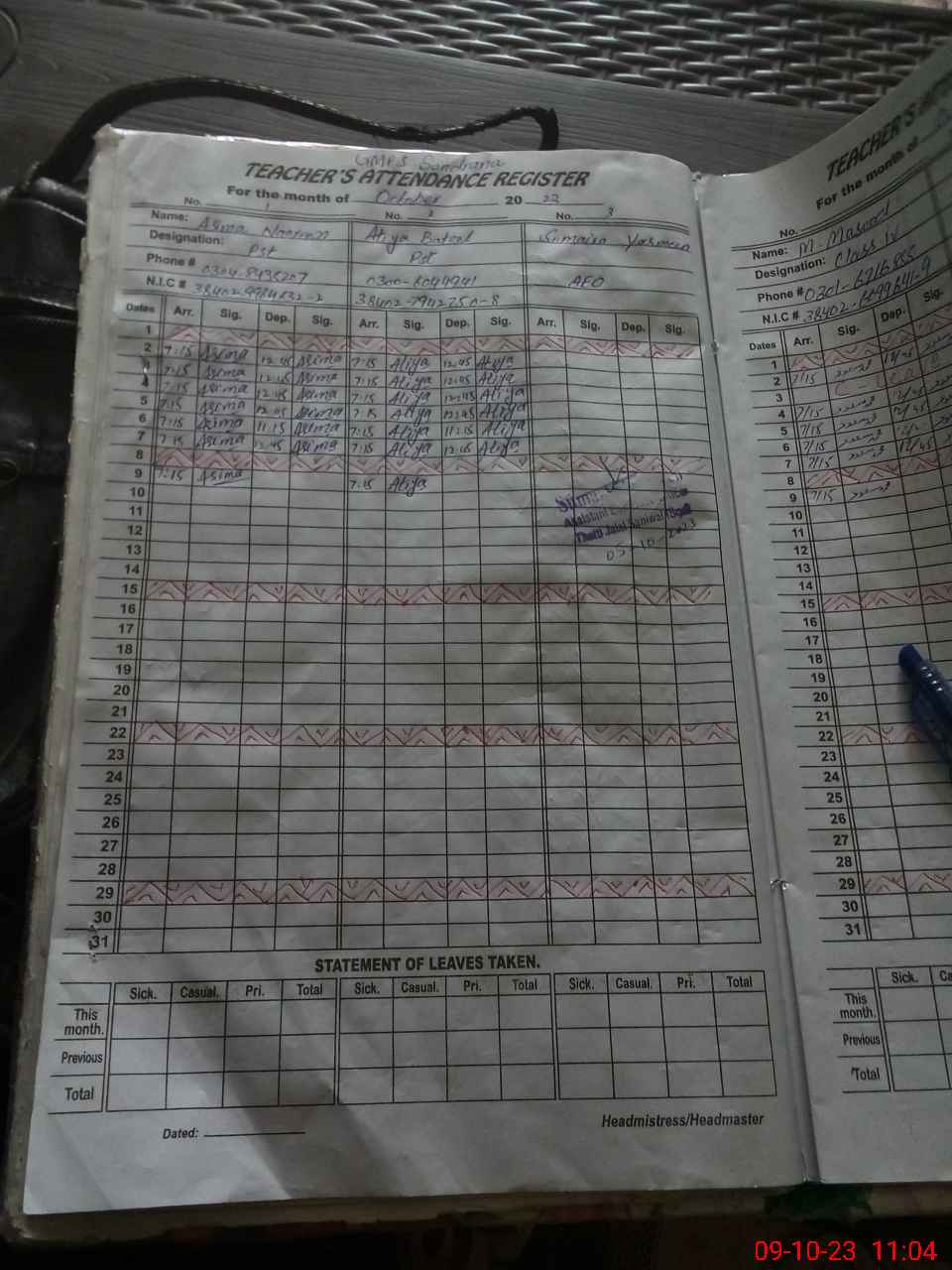 | Name: AS**** NO**** Designation: (School Headmaster's/Headmistress's) ESE (SCI _ MATH) Phone/Cell Number: 03**** |