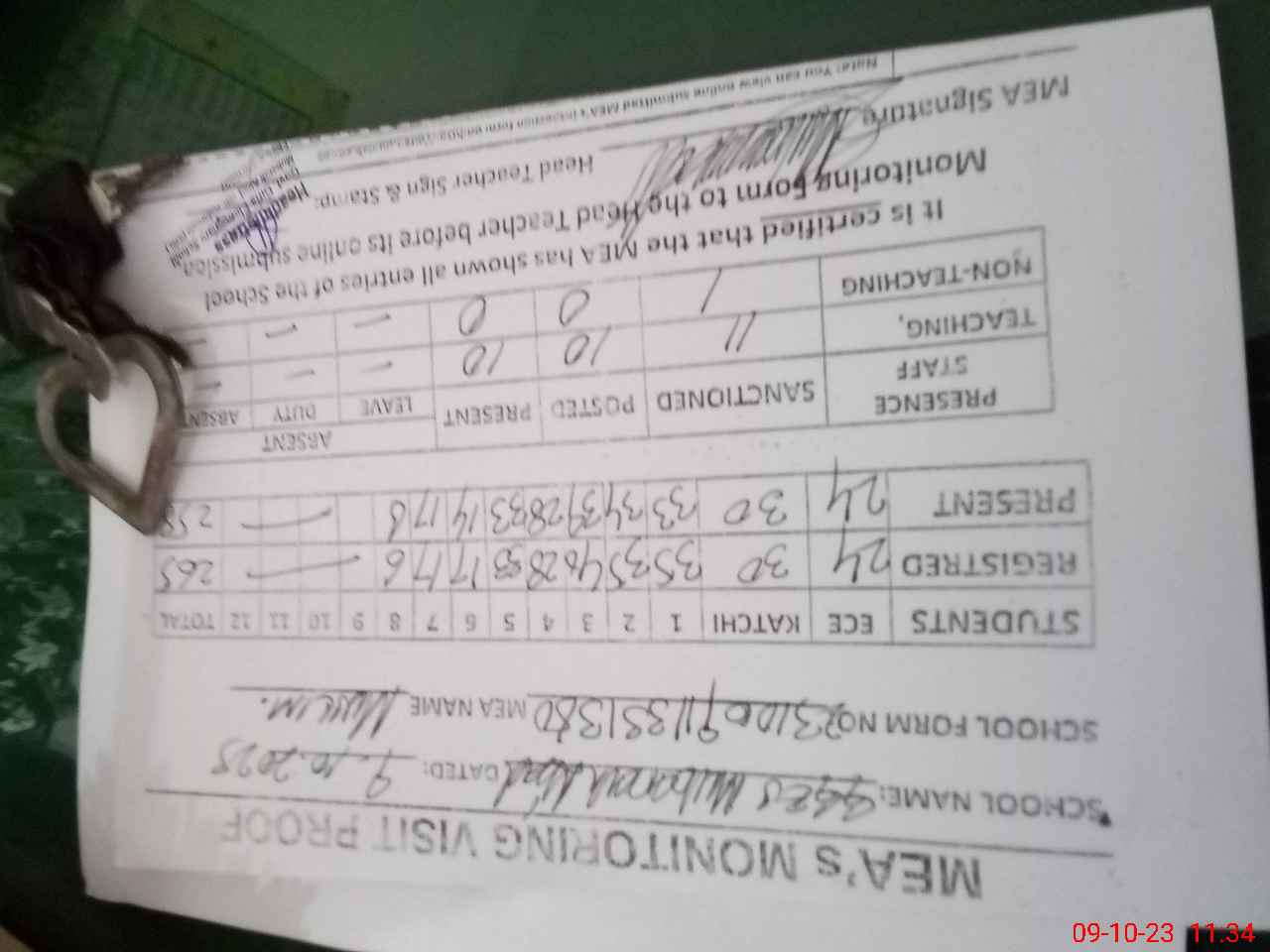 | Monitoring Date: 09-10-2023 | Start Time: 09-10-2023 11:10 AM | End Time: 09-10-2023 11:58 AM | Name of MEA: Mu**** Mu**** | |