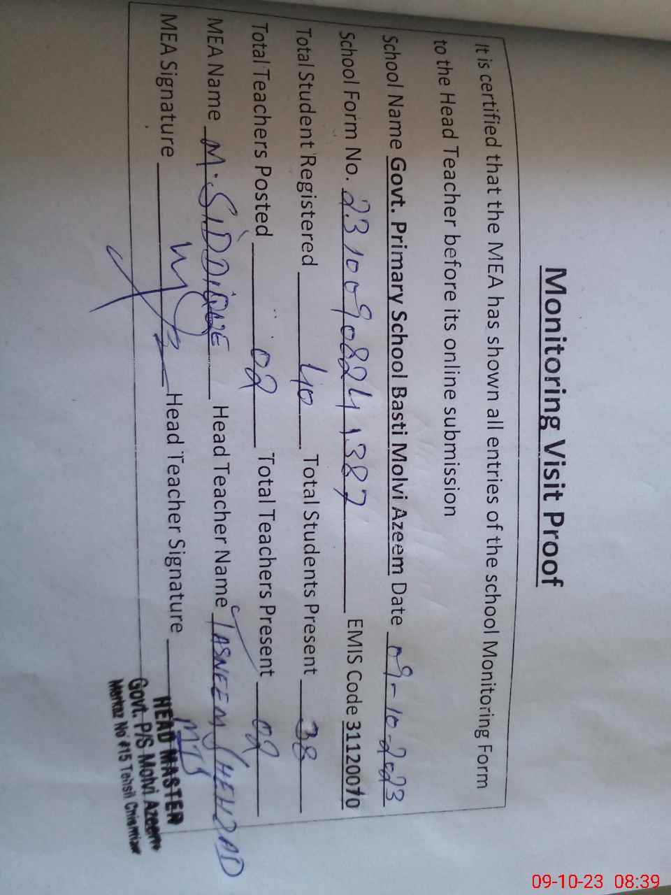 | EMIS Code: 31120070 | Name of School: GPS BASTI MOLVI AZEEM | |||