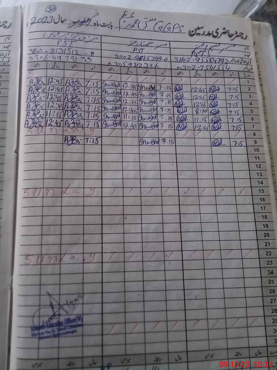 | Name: NA**** AK**** Designation: (School Headmaster's/Headmistress's) PST HT Phone/Cell Number: 03**** |