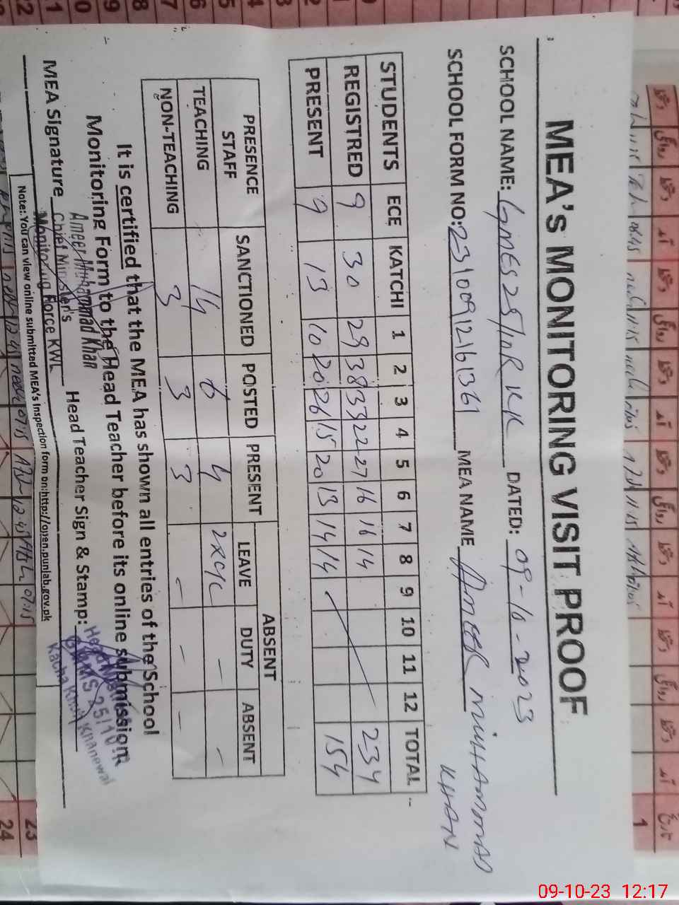 | EMIS Code: 36420113 | Name of School: GMES 25/10-R, KACHA KHUH | |||