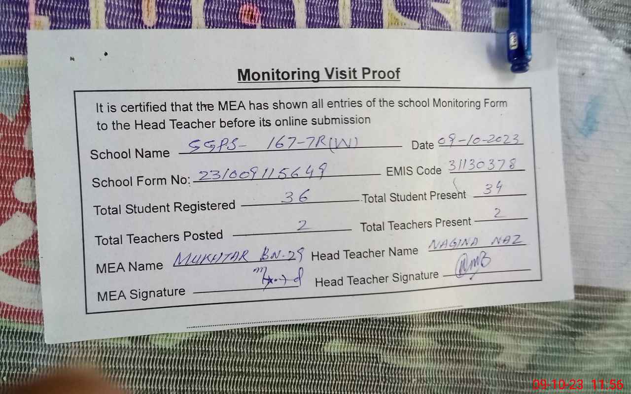 | EMIS Code: 31130378 | Name of School: GGPS CHAK NO167/7-R (w) | |||