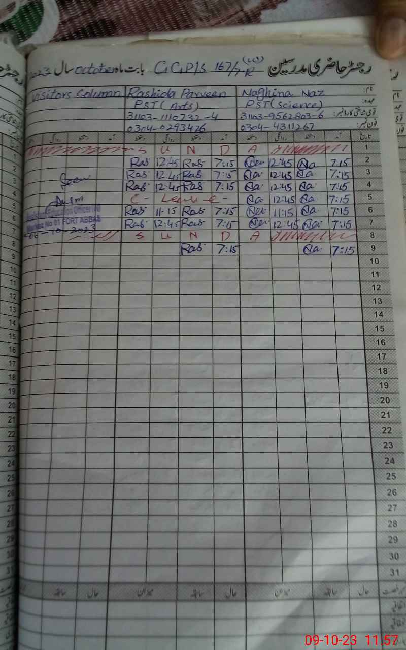 | District: BAHAWALNAGAR | Tehsil: FORT ABBAS | Markaz: FTS-I-FEMALE | Level: Primary | |