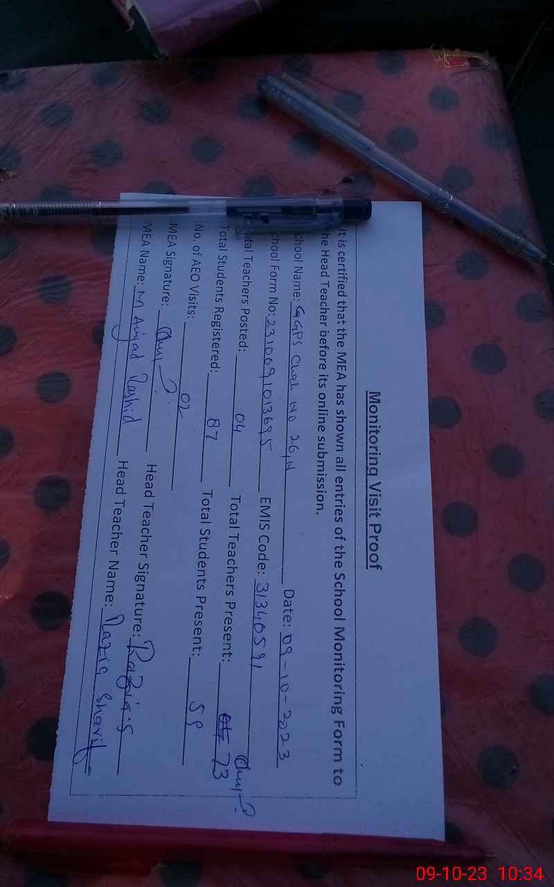 | EMIS Code: 31340591 | Name of School: GGPS CHAK NO. 26/NP | |||