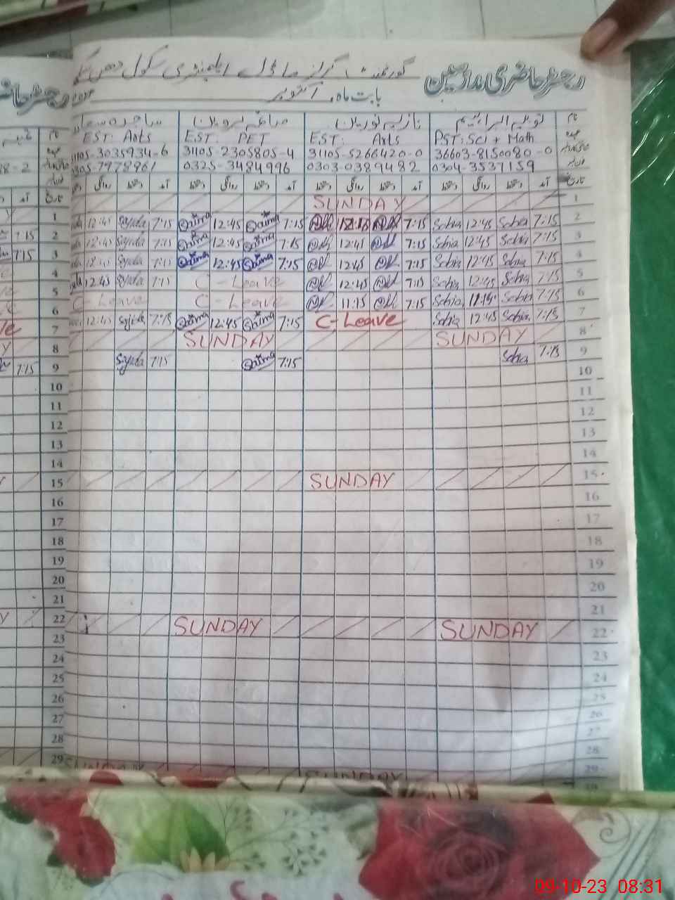 | 31**** | Kh**** Pe**** | 2 | 3 | 0 | 0 | 0 | 0 | 0 | 0 | 0 | 3 | Absent (Un-Authorized) | |