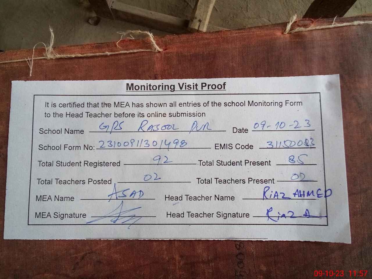 | EMIS Code: 31150083 | Name of School: GPS RASOOL PUR | |||