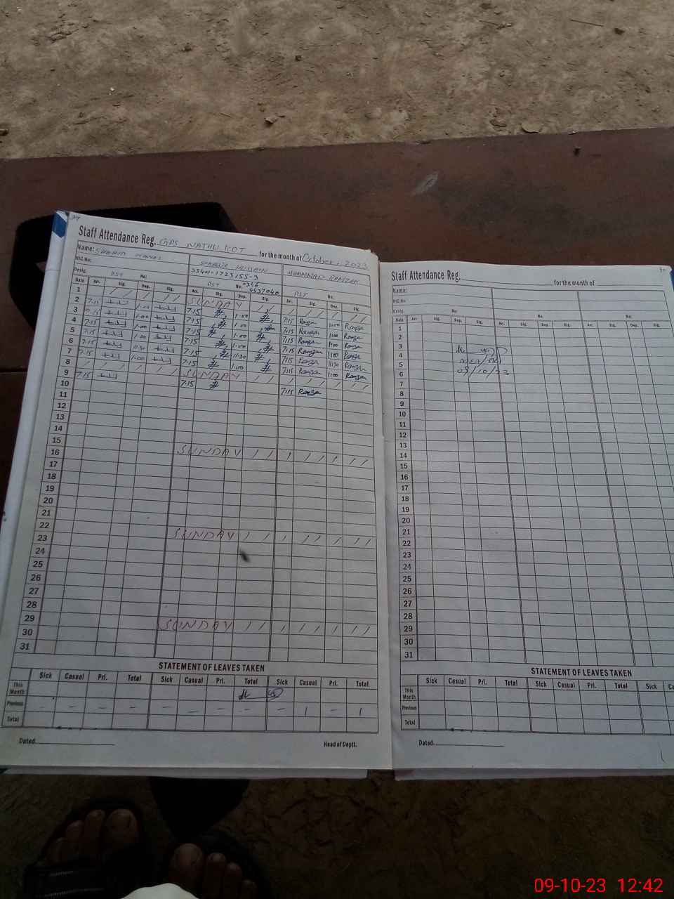 | Leave | Duty | Absent | Maternity | Medical | Ex- Pak |