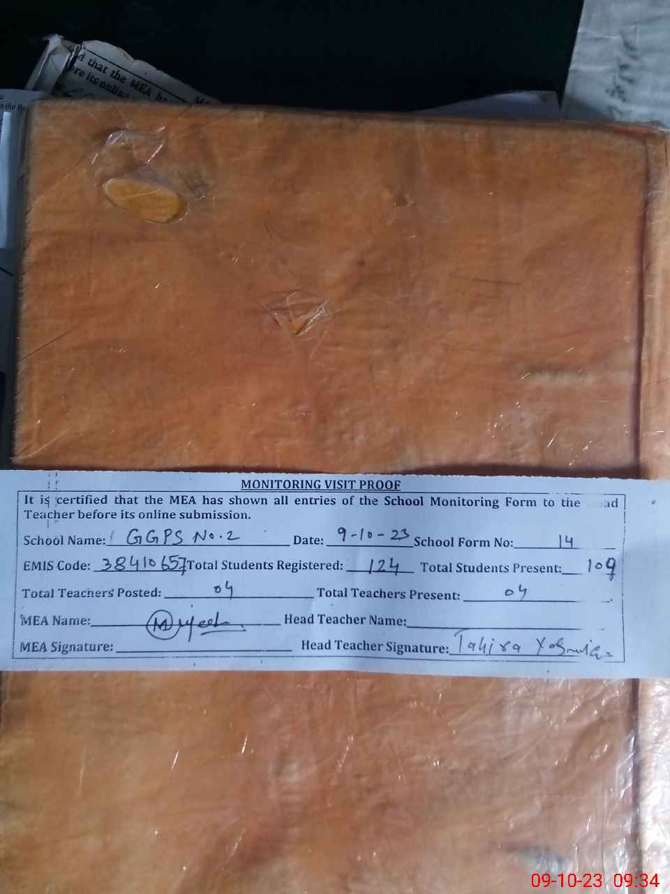 | Attendance Register | Head Teacher | MEA with School | Visit Proof |
