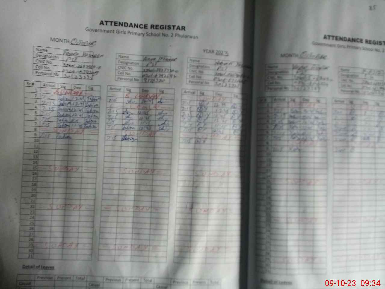| CNIC | Full Name | Designation | R/C | Absence During Last Calender Month |