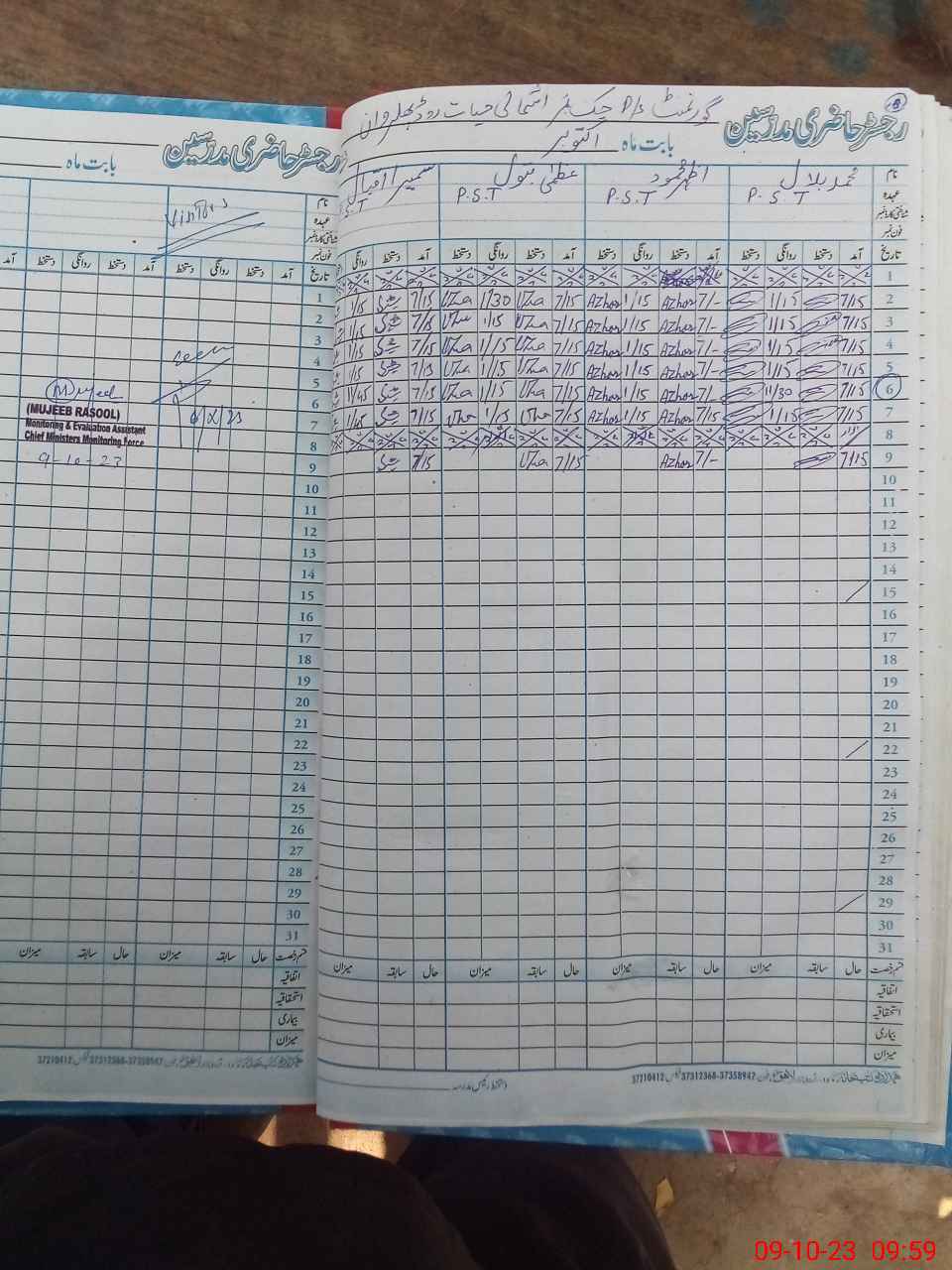 | Monitoring Date: 09-10-2023 | Start Time: 09-10-2023 09:37 AM | End Time: 09-10-2023 10:01 AM | Name of MEA: MU**** AH**** | |