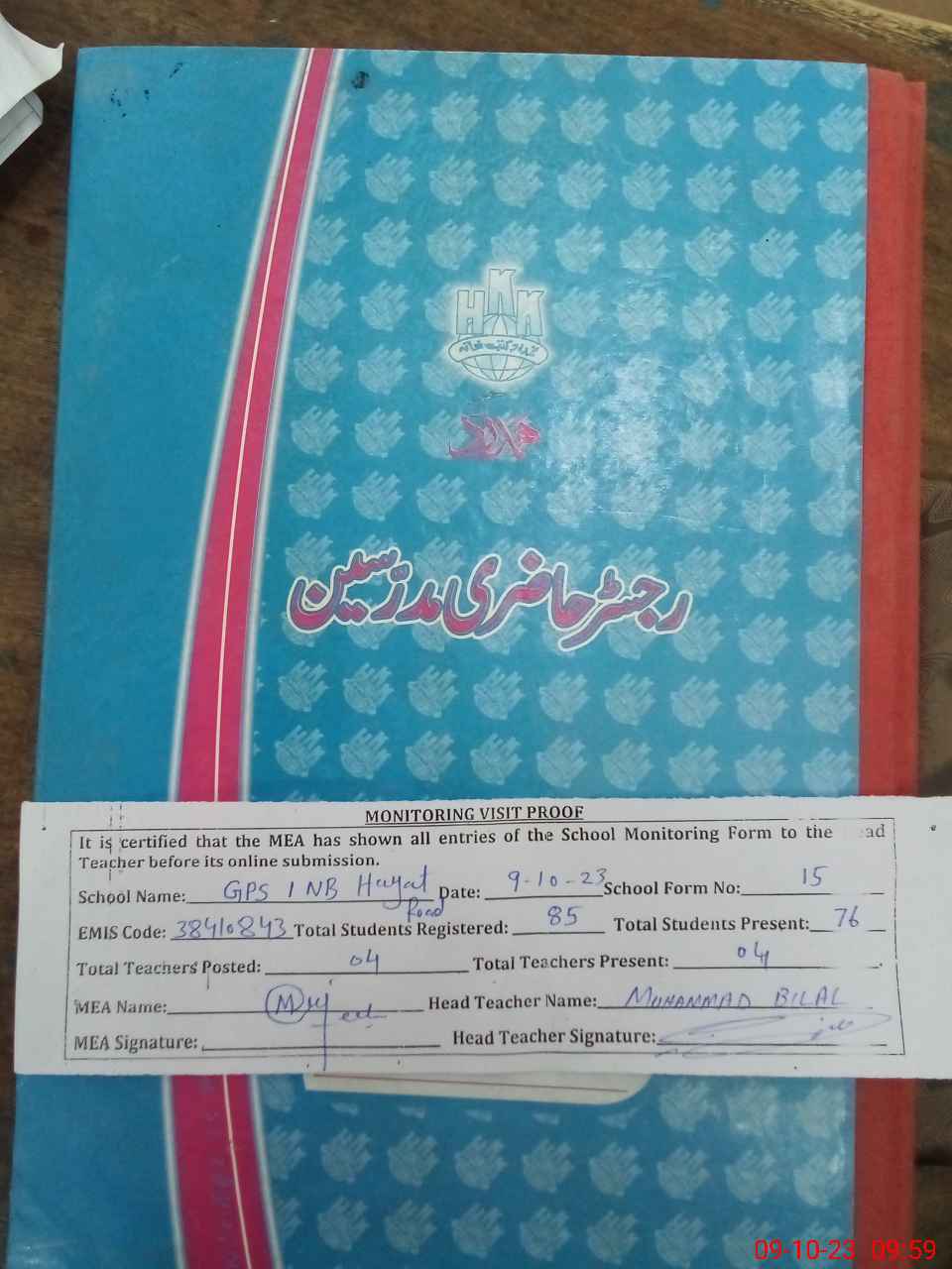 | Attendance Register | Head Teacher | MEA with School | Visit Proof |