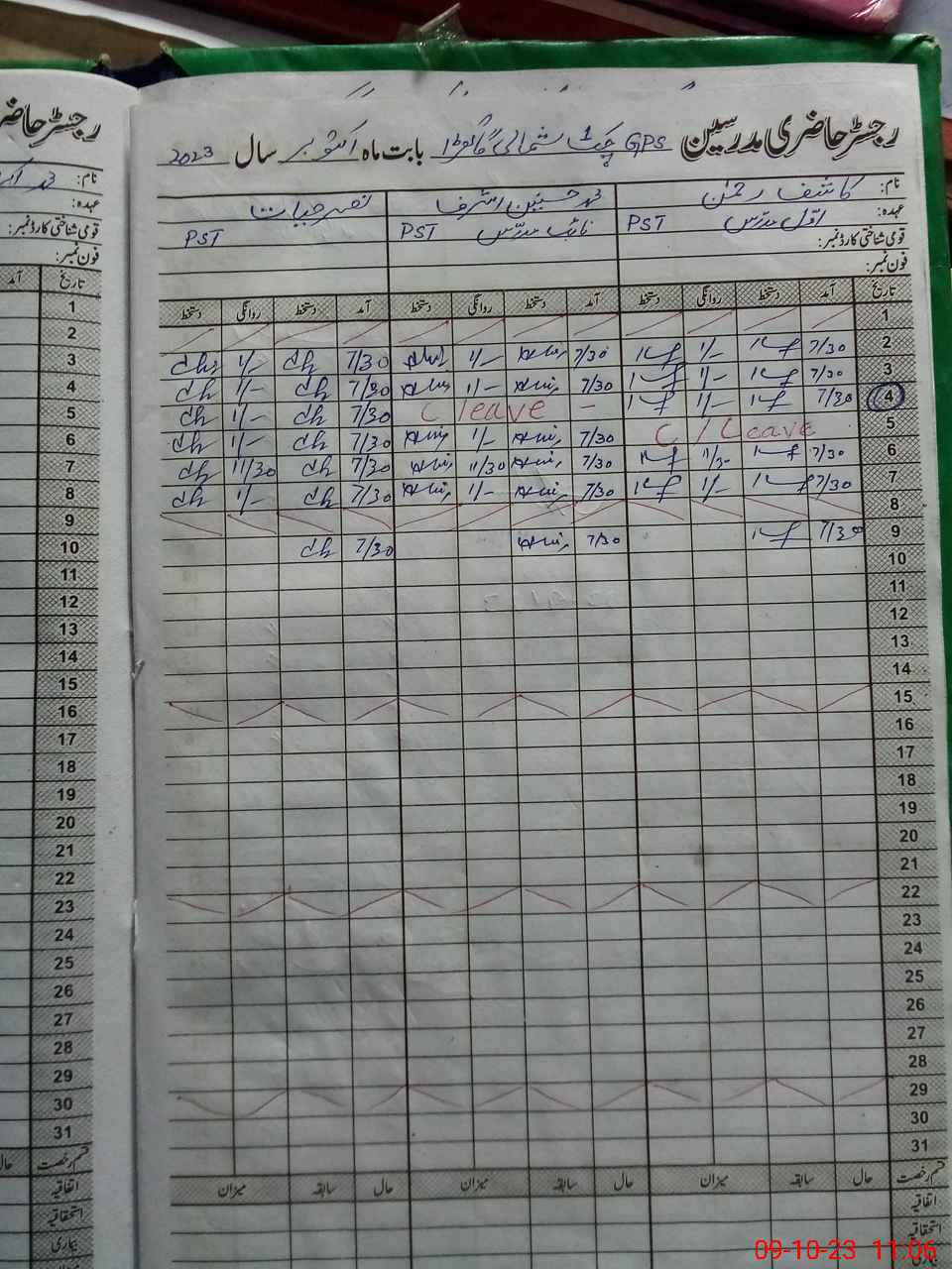 | Name: Ka**** Re**** Designation: (School Headmaster's/Headmistress's) PST Phone/Cell Number: 03**** |