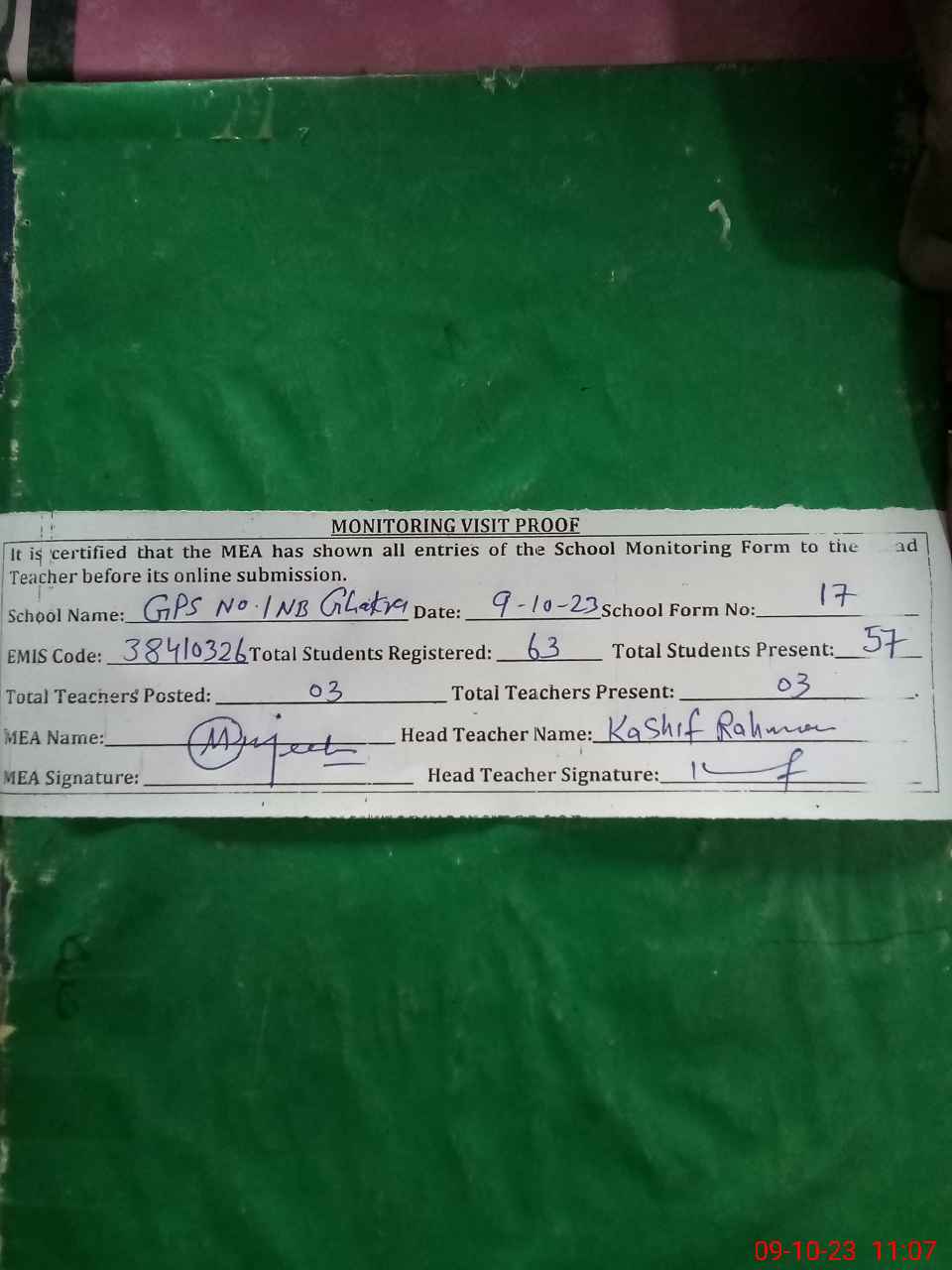 | EMIS Code: 38410326 | Name of School: GPS CHAK NO.1 NB GAKHRA | |||
