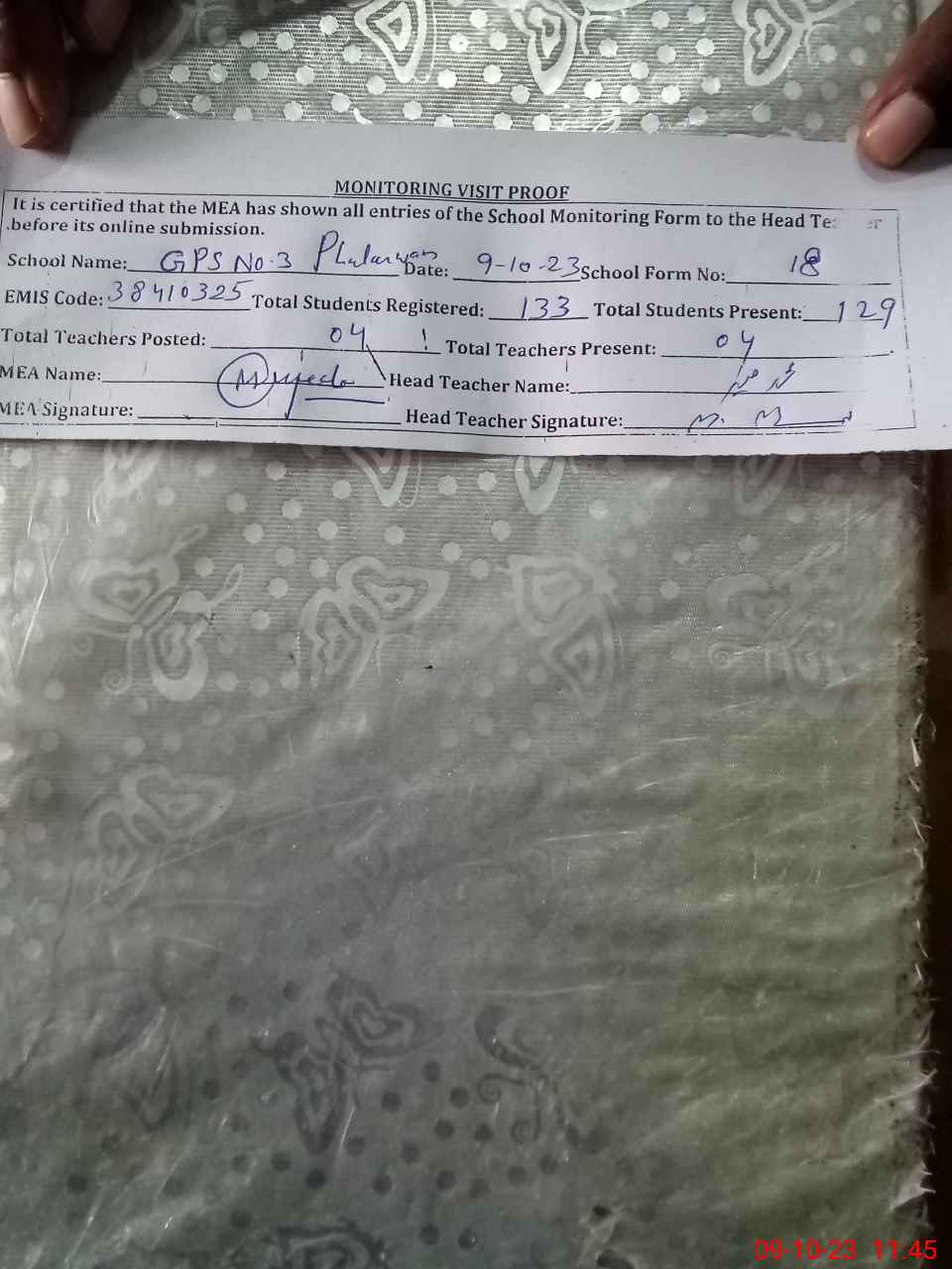 | Attendance Register | Head Teacher | MEA with School | Visit Proof |