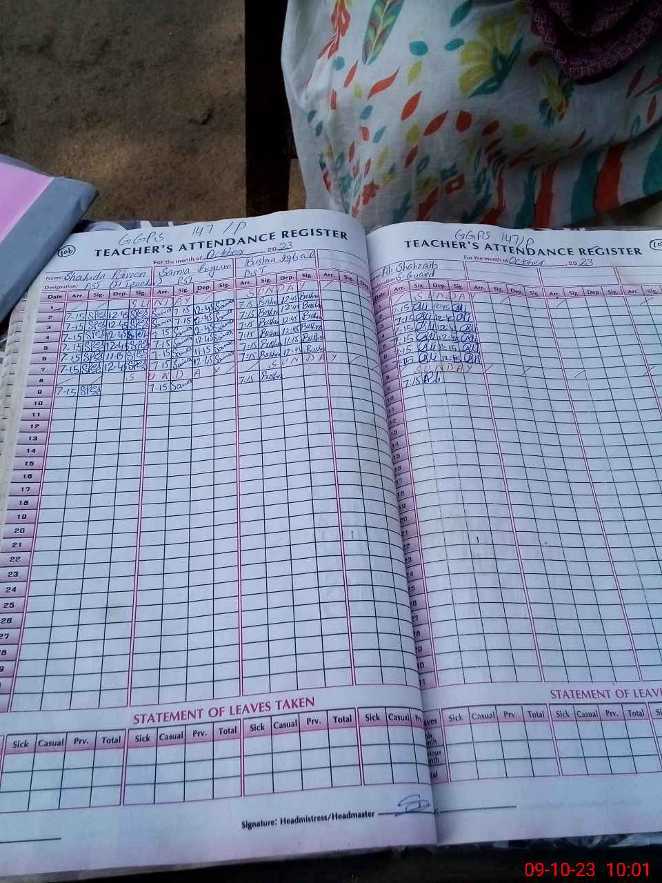 | Monitoring Date: 09-10-2023 | Start Time: 09-10-2023 09:56 AM | End Time: 09-10-2023 10:19 AM | Name of MEA: Gh**** Ra**** | |