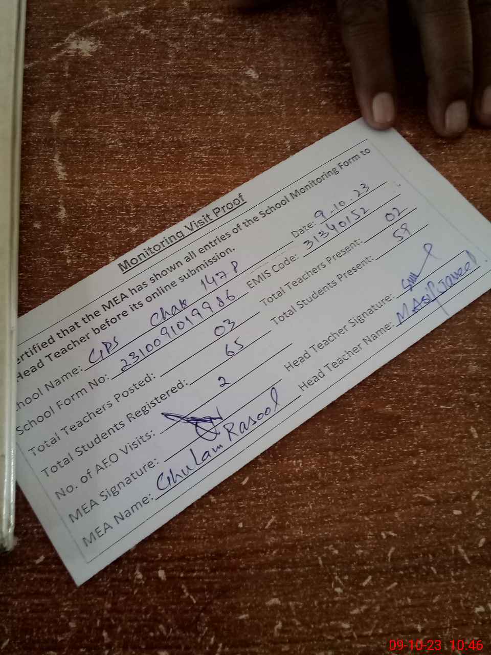 | Name: MU**** AS**** Designation: (School Headmaster's/Headmistress's) PST/PTC/JV Phone/Cell Number: 03**** |