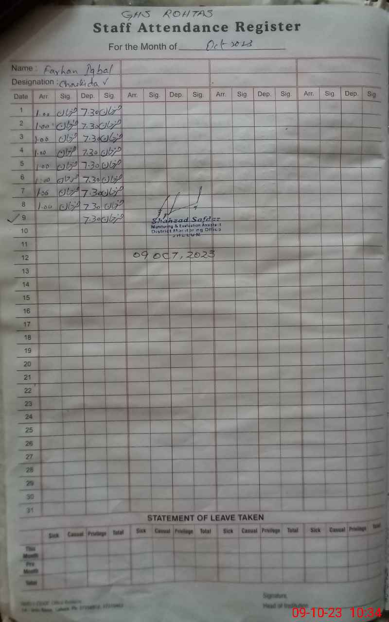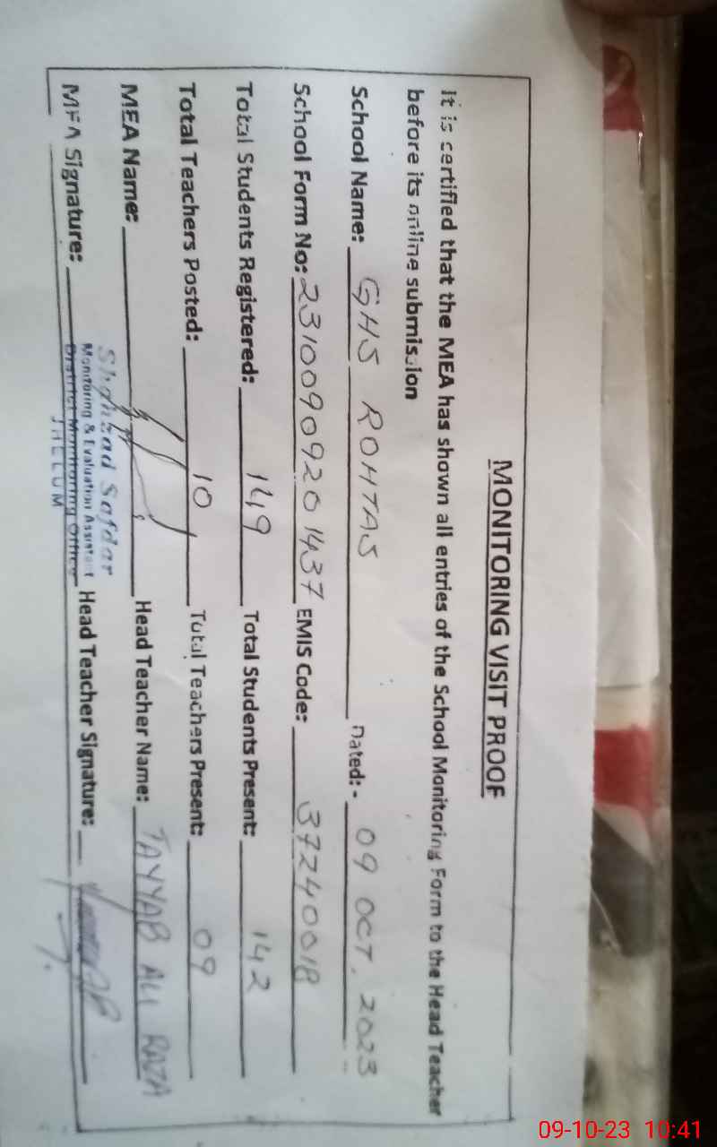 | EMIS Code: 37240018 | Name of School: GHS ROHTAS | |||