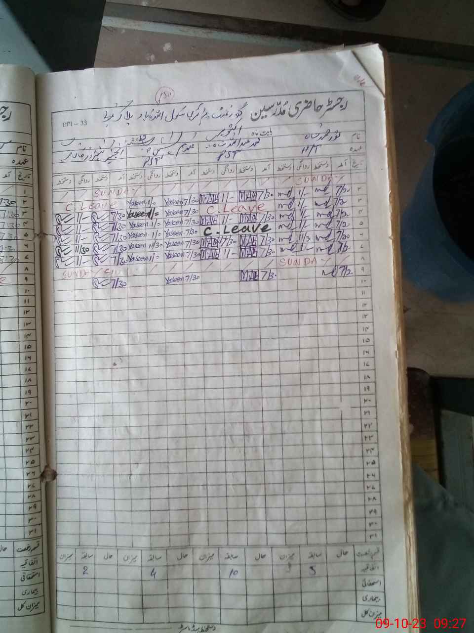 | CNIC | Full Name | Designation | R/C | Absence During Last Calender Month |