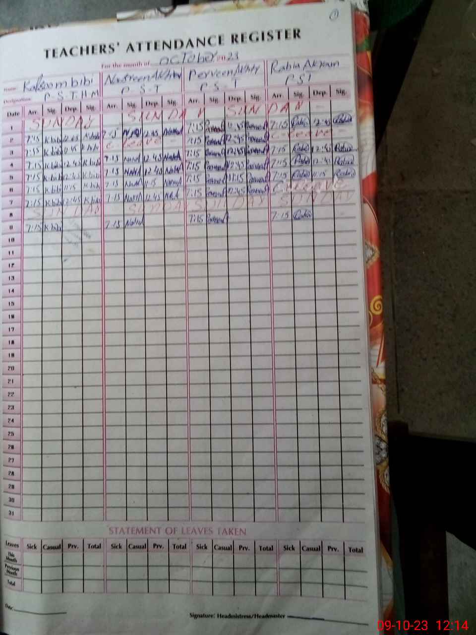 | Attendance Register | Head Teacher | MEA with School | Visit Proof |