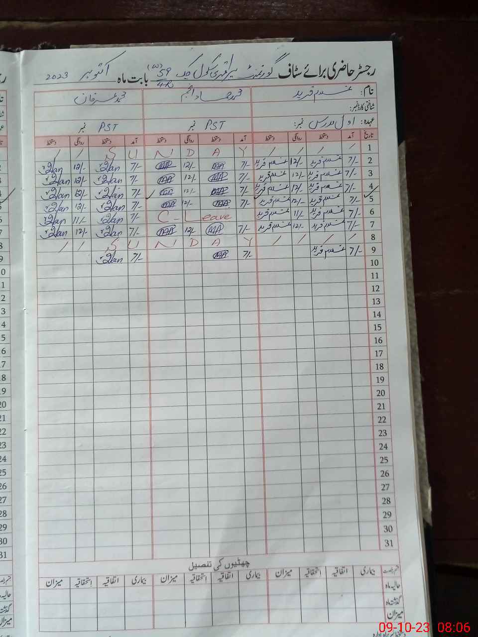 | CNIC | Full Name | Designation | R/C | Absence During Last Calender Month |
