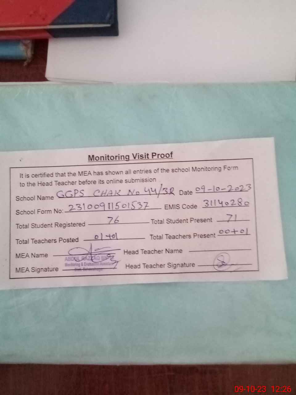 | EMIS Code: 31140280 | Name of School: GPS CHAK NO.44/3-R | |||