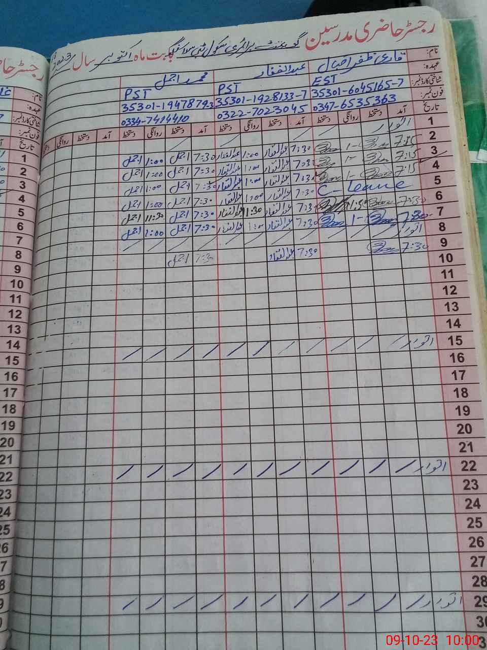 | Name: ZA**** IQ**** Designation: (School Headmaster's/Headmistress's) EST AT Phone/Cell Number: 03**** |