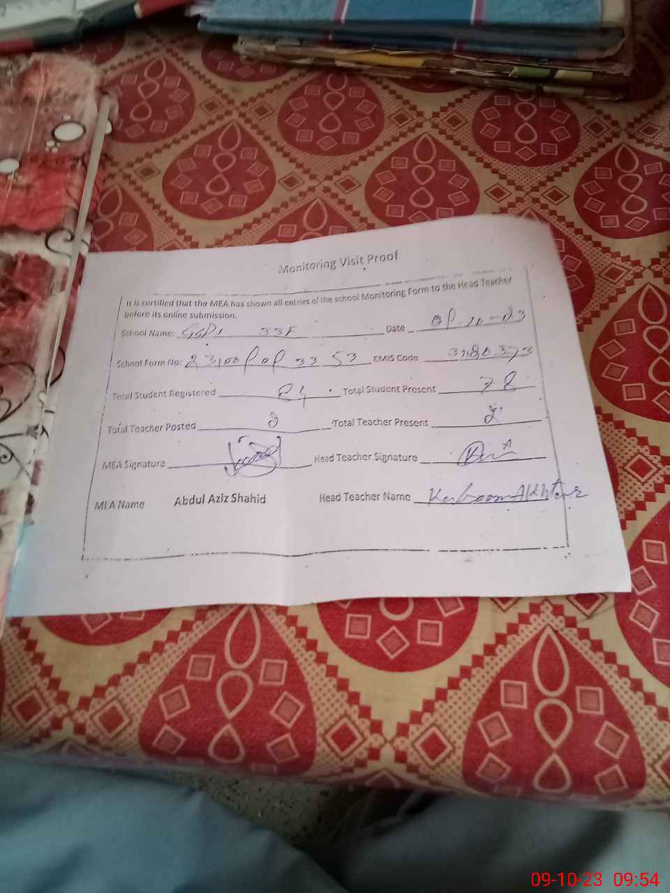 | EMIS Code: 31120573 | Name of School: GGPS CHAK NO. 33/F | |||