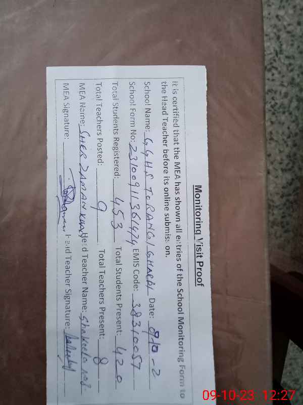 | EMIS Code: 38310057 | Name of School: GGHS TORANGI GHARBI | |||